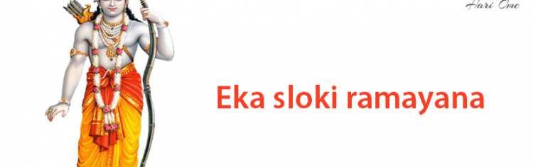 Eka sloki ramayana adau rama tapovanadigamanaṁ hatva mr̥gaṁ kañcanam | vaidehi haraṇaṁ jatayu maraṇaṁ sugriva sambhaṣaṇam || vali nigrahaṇaṁ samudrataraṇaṁ lankapuridahanan | paścadravana kumbhakarṇa hananaṁ cetaddhi ramayaṇam || Download PDF here Eka sloki ramayana