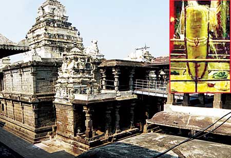 ఈ శివలింగం మీద ఎరుపురంగు మరక కనిపిస్తుంది. లింగం ఎత్తు ఆగకుండా పెరిగిపోతుండటంతో దాన్ని ఆపేందుకు మేకు కొట్టడంతో లింగంలోంచి రక్తం వచ్చి అలా మరకలా పడిందని చెబుతారు.