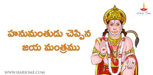 Ramayana Hanuman Jaya Mantram జయమంత్రము ఎప్పుడు చెప్పబడింది? అశోక వనం లో రాక్షసులను ఎదురుకొన్న హనుమ ముందుగా చెప్పిన మంత్రము జయ మంత్రము. జయ మంత్రము ఏమిటి? (What is Jaya Mantra) జయత్యతిబలో రామో లక్ష్మణశ్చ మహాబలః| రాజా జయతి సుగ్రీవో రాఘవేణాభిపాలితః|| దాసోహం కోసలేంద్రస్య రామస్యాక్లిష్ట కర్మణః| హనుమాన్ శత్రుసైన్యానాం నిహన్తా మారుతాత్మజః|| న రావణ సహస్రం మే యుద్ధే ప్రతిబలం భవేత్| శిలాభిస్తు ప్రహరతః పాదపైశ్చ సహస్రశః|| అర్ధయిత్వా పురీం లంకాం అభివాద్య … Continue reading Ramayana Hanuman Jaya Mantram | జయ మంత్రము